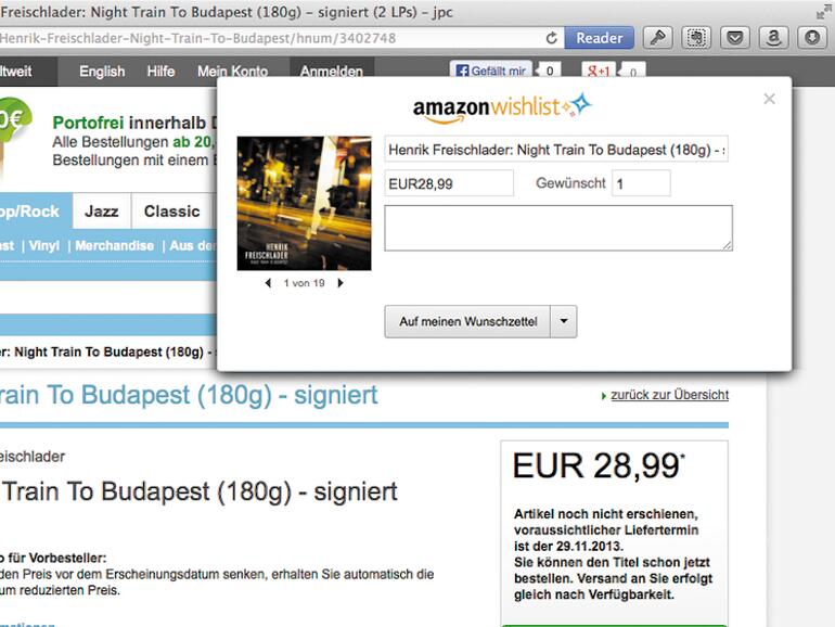mit Produkten zu Ihren Amazon-Wunschlisten hinzufügen. Angaben wie Titel und Bilder erkennt die Erweiterung automatisch. Sie geben den Preis, die Anzahl und einen Kommentar als Ergänzungen ein. Die Erweiterung lässt Sie auch festlegen, auf welche Ihrer verschiedenen Wunschlisten (z. B. auch für Ihre Kinder) der Eintrag hinzugefügt wird. Sehr praktisch, um auf Geburtstage oder Weihnachten vorbereitet zu sein, wenn nach Wünschen gefragt wird.