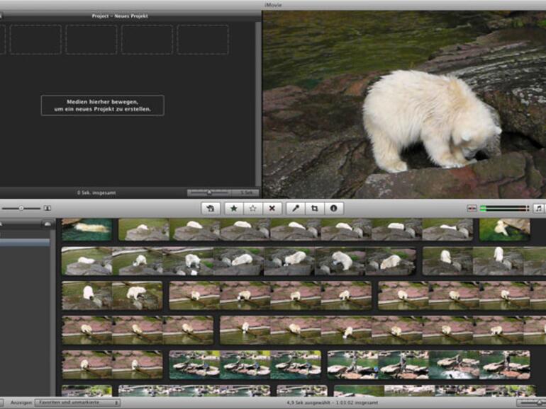 Diese werden üblicherweise zusammen mit den Fotos in die iPhoto-Mediathek importiert. Wenn Sie iMovie das erste Mal starten, werden diese Filme in der Ereignis-Mediathek von iMovie in der Liste iPhoto-Videos angezeigt. Dies dauert – je nach Menge der Videos – allerdings geraume Zeit. Von dort aus können Sie später die Filme in Ihre Projekte aufnehmen und bearbeiten.