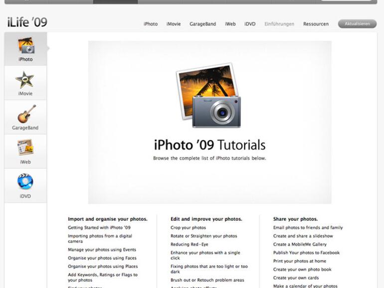 Wer der englischen Sprache einigermaßen mächtig ist, kann sich auch die Videotutorials von Apple zu Gemüte führen. Von iPhoto über iWeb bis zu iDVD finden Sie auf den Supportseiten von Apple einführende und weiterführende Tutorials. Ihrem Weg zum iLife-Experten steht danach nichts mehr entgegen.