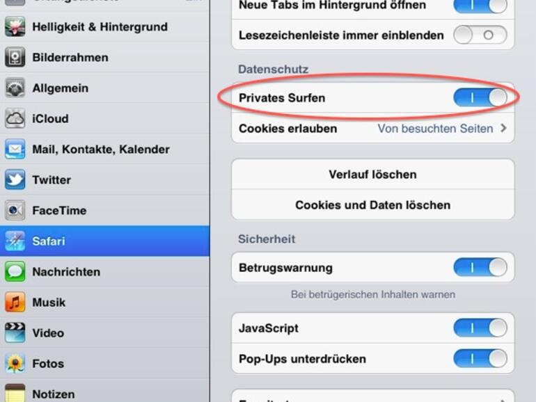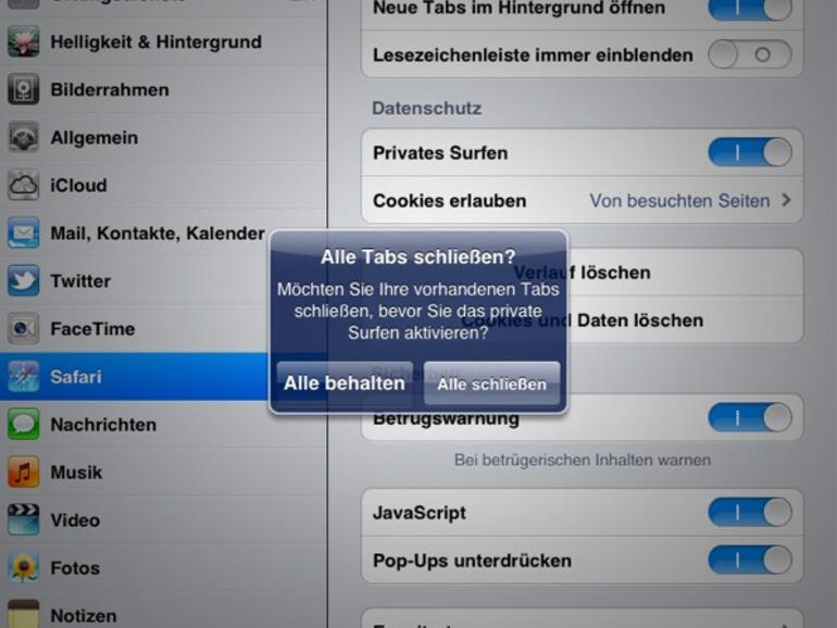 Spurenloses SurfeniOS 5: Privates Surfen in Safari aktivieren