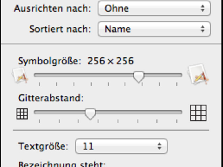 Der Finder verwaltet die Darstellungsmodi getrennt, es ist möglich in der Cover-Flow-Ansicht weiter die Symbolvorschau zu verwenden, während in der Symbolansicht die Vorschau ausgeschaltet ist. Selbst wenn auf "Als Standard verwenden" geklickt wird, gilt dies nur für die aktuell gewählte Darstellungsart.