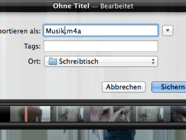 Diese Funktion ist beispielsweise praktisch, um aus Musikvideos eine in iTunes speicherbare Musikdatei zu machen. Öffnen Sie das Video einfach, und klicken Sie auf Ablage, Exportieren und Nur Audio. Ein Klick auf Sichern startet den Prozess, der im besten Fall bereits nach wenigen Sekunden beendet ist. Im Anschluss können Sie die Audio-Datei wie gewohnt in iTunes importieren oder in Ihrem Filmprojekt weiterverarbeiten.
