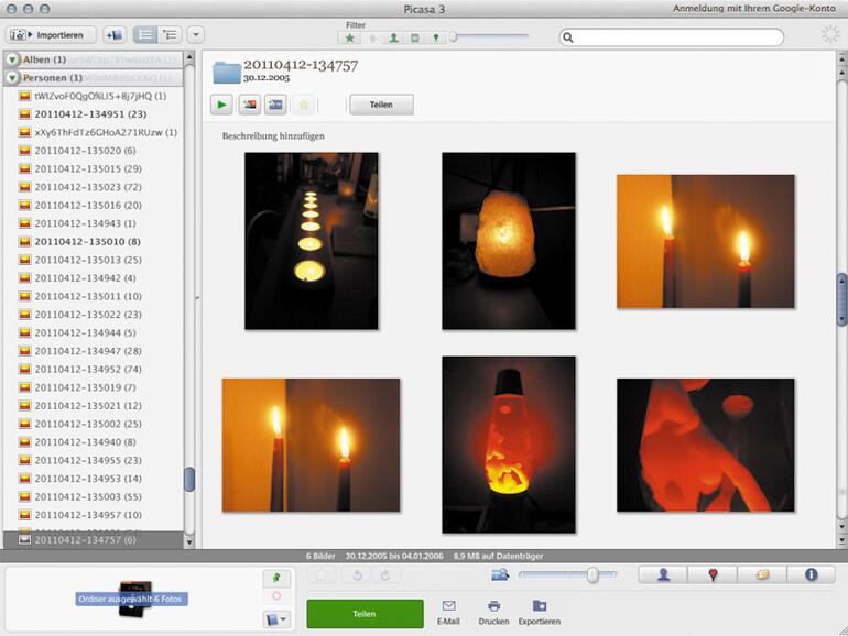 Mit iPhoto liefert Apple dabei ein außerordentlich praktisches wie leistungsfähiges Tool bei jedem neuen Mac mit: iPhoto liegt inzwischen in Version 9.5 vor und ist seit über einem Jahrzehnt das Nonplusultra der privaten Fotoverwaltung auf dem Mac. Einfach, effizient, einsteigerfreundlich – das iTunes für Fotos, wenn man so will. Doch auch Apple-Hauptkonkurrent Google hat nicht geschlafen: Unter dem Markennamen „Picasa“ bietet der längst-nicht-mehr-nur-Suchmaschinen-Anbieter nicht nur eine leistungsfähige Fotoplattform im Stil von Flickr, sondern auch eine kostenlose Fotoverwaltungssoftware für den Desktop, die iPhoto auf dem Mac angreifen soll – und auf Windows- und Linux-Plattformen bereits jetzt nahezu konkurrenzlos ist.