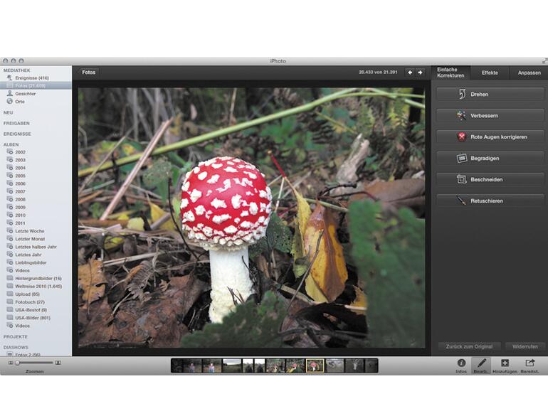Die Korrekturoptionen von iPhoto sind sehr gut einstellbar.
