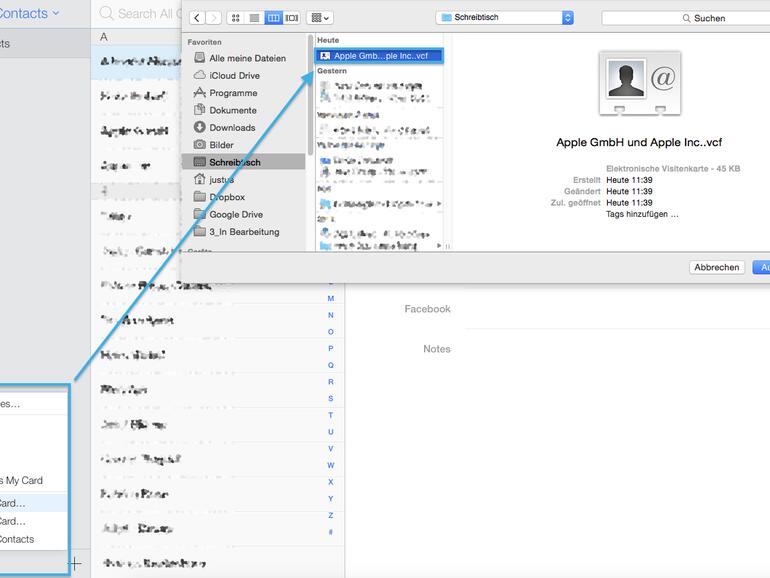 Bevor Sie jedoch Ihre Kontakte in die iCloud importieren und automatisch auf Ihr neues iPhones synchronisieren lassen, müssen Sie die Kontakte von Ihrem alten Rechner im vCard-Format übertragen. Bei Handys mit Bluetooth bietet sich je nach Modell die Möglichkeit zur drahtlosen Übertragung, Handys ohne Bluetooth können in der Regel mithilfe eines speziellen Kabels und zugehöriger Software ausgelesen werden. Achten Sie darauf, dass Sie alle Kontakte als eine einzelne .vcf-Datei und nicht einzeln exportieren.